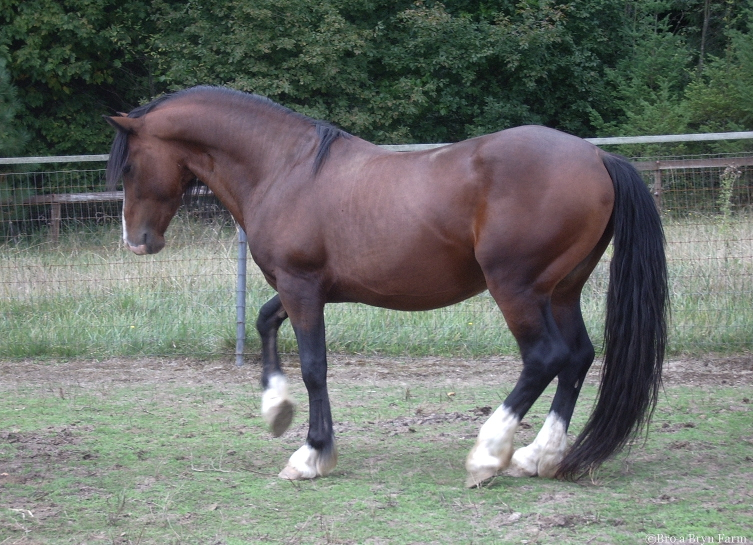 Imported stallion *Trefaes Mabon Victor is by Fronarth Victor, who had multiple Royal Welsh wins including reserve George Prince of Wales Cup winner to his dam, Fronarth Boneddiges. Fronarth Victor sired the 2010 George Prince of Wales Cup winner Haighmoor Glain. Fronarth Victor’s sire Ebbw Victor was one of the most sought-after stallions in the history of the breed, winning among many other top awards, the George Prince of Wales Cup. *Trefaes Mabon Victor’s dam, Trefaes Bessie, is out of Trefaes Stud’s renowned foundation broodmare, Trefaes Brackenleaf.